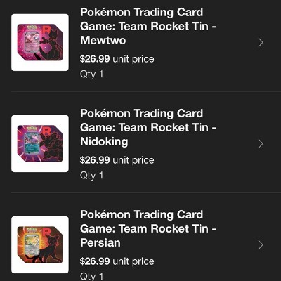 Ordered one of each tin and didn’t receive the Persian tin. (Which I was very excited for). Received 2 nidokings and a mewtwo. Called support and there is nothing I can do even though they messed up on their end. So don’t bother ordering if you actually want the product you’re paying for :)