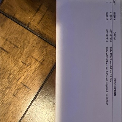 As seen in the pictures above, binder came with what looks to be a grease stain. I have already tried cleaning it off but no luck. I love this binder and I'm not trying to complain here. It would just be nice to receive your product without cosmetic damage though. Amazing product besides the damage.
