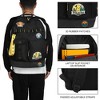 Embark on an adventure with this black Pokémon backpack, showcasing character patches of Pikachu, Snorlax, Eevee, Gengar, and Charmander. Perfect for fans, this bag includes a front buckle clip pocket, a front zipper pouch, and a front zipper pocket with webbing pullers for secure organization. Made with durable poly and PU materials, it measures 12" W x 19" H x 6" D. Easy to maintain, this backpack can be wiped clean for effortless care.