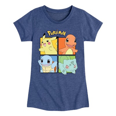 Girls' - Pokémon - Eevee Pikachu Charmander Squirtle Bulbasaur Grid Fitted Short Sleeve Graphic T-Shirt