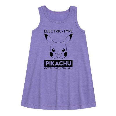 Girls' - Pokémon - Pika Pikachu Grid Graphic Sleeveless Aline Dress