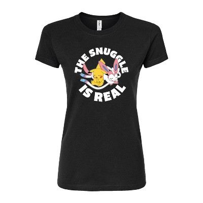 Pokémon - The Snuggle Is Real Pikachu and Sylveon -Men's Short Sleeve Graphic T-Shirt - Celebrate the essence of Pokemon's Pokémon with officially licensed apparel featuring unique designs crafted exclusively by Hybrid Apparel. Each piece brings beloved characters, iconic imagery, and memorable moments to life, offering Pokémon fans a one-of-a-kind way to showcase their passion.