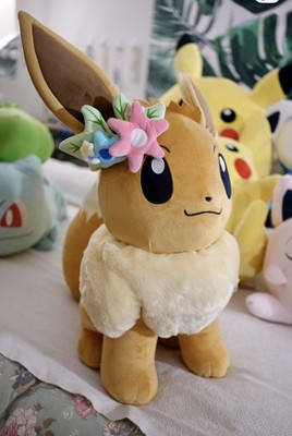 Choose to cuddle Flower Crown Eevee, the Normal Type Pokémon. This snuggly 24-inch Pokémon plush is made with super soft material and always ready to nuzzle its trainer. Featuring authentic details, this popular normal-type looks like it jumped right out of the smash-hit Pokémon Animated Series. Officially licensed Pokémon product from Jazwares. Ages 3+