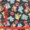 Embark on an adventure with this black Pokémon backpack and lunch kit set. Featuring an all-over print of Pikachu, Squirtles, Bulbasaur, Charmander, and Pokéballs, this backpack combines style and functionality. It includes a full zip front panel pocket, two exterior zipper pockets, and two mesh bottle sleeves with reflective tape. The padded adjustable straps and tuck-away back straps provide a comfortable and versatile fit. The insulated lunch kit keeps food cold for hours. The backpack can be wiped clean, while the lunch kit should be wiped clean with water for easy maintenance
