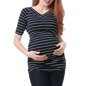Designed for comfort and style through every stage of pregnancy, this lightweight maternity V-neck top is a versatile essential for everyday wear. Crafted from a soft, breathable knit, it offers gentle stretch to accommodate your growing bump while maintaining a flattering fit. The **broad banded neckline** frames the face beautifully, and the elbow-length raglan sleeves provide relaxed coverage with a sporty-chic touch. Thoughtful side ruching ensures a comfortable, flexible fit that flatters your silhouette before and after pregnancy. Finished with textured knitted stripes, this top adds a playful, modern twist to your maternity wardrobe—perfect for pairing with jeans, leggings, or shorts for effortless daily style.