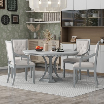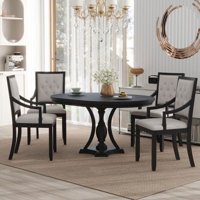 Add timeless charm and functional elegance to your dining room with this 5-Piece Retro Dining Set, featuring a round extendable table and four upholstered armchairs.