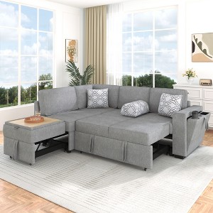 Polibi Convertible L-Shaped Sleeper Sectional Sofa with Dual Pull-Out Beds