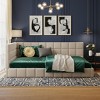 - 【L-Shaped Corner Design with Tufted Velvet Panels】Unlike traditional daybeds, the wraparound corner design delivers a cozy, enclosed feel that’s perfect for lounging during the day and sleeping at night. The grid-tufted velvet panels provide a luxe backdrop that looks stunning from every angle—ideal for placing against walls or floating in open-concept spaces.