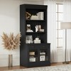 - 【Tempered Glass Cabinet Doors for Enhanced Visibility】Two framed glass doors protect the lower cabinet’s contents from dust while still letting you showcase decorative boxes, keepsakes, or media items. The glass brings a refined, airy feel to the sturdy base of the bookcase.