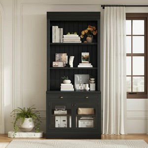 Upgrade your storage and style in one elegant move with the Polibi Charm Modern Bookcase. Crafted to elevate any room, this multifunctional piece features a solid wood frame and thickened MDF panels for long-lasting stability. Its clean vertical slat back design, tempered glass doors, and antique-style metal hardware lend a timeless sophistication. With three spacious open shelves—one of which is adjustable—and a lower cabinet with internal shelving and a smoothly gliding drawer, this bookcase offers the perfect blend of display and concealed storage.