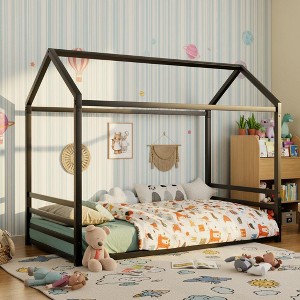 Create a cozy, creative, and safe sleeping space with this Montessori-inspired house floor bed frame. Designed with a charming house-shaped silhouette and low-to-the-ground style, it encourages children’s independence while adding playful charm to any bedroom. Built from high-quality metal with an odor-free finish, this bed frame is both durable and safe for kids. The surrounding guardrails act as a secure fence, giving parents peace of mind while little ones enjoy their own special sleep environment. Available in Twin or Full size and finished in classic White or Black, this floor bed blends fun, function, and safety for modern family living.