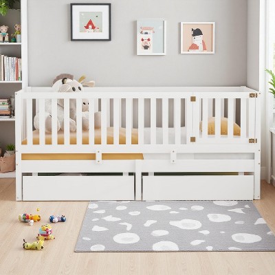 - 【Montessori Floor Bed Style】Crafted with a floor-hugging design, this bed allows children to climb in and out independently, fostering confidence, autonomy, and a safe transition from crib to bed.