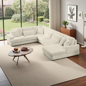 Polibi Oversized U-Shaped Sectional Sofa with Plush Corduroy Upholstery