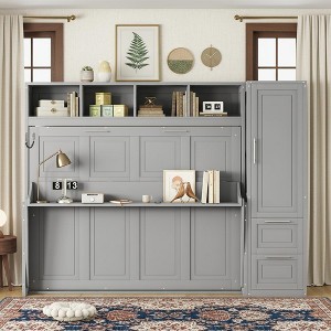 - 【Premium Materials and Modern Finish】Constructed from solid wood and engineered MDF, this Murphy bed delivers both strength and elegance. Available in classic White or modern Gray, it seamlessly complements various décor styles, from minimalist to contemporary farmhouse.