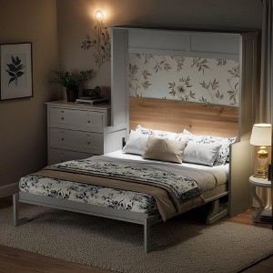 Polibi Queen Wall Bed with Fold-Down Desk, USB Charging Station & LED Lighting