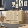 - [Spacious Dual Drawers – Extra Storage Built In] The two oversized drawers beneath the cabinet provide practical hidden storage—great for stashing extra bedding, pillows, seasonal clothes, or daily essentials. Smooth-glide hardware and full-width handles make them easy to open and access.