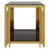 Polibi Square Gold Modern Glass End Table with 2-Tier Shelf
