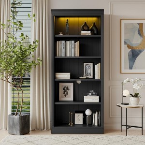 Create a well-lit, beautifully organized space with the Polibi Tall LED Bookcase, a modern yet timeless storage piece crafted for both function and ambiance. Designed with a premium solid wood frame and thickened MDF panels, this bookshelf is built to last and styled to impress. The top shelf is equipped with a USB-powered LED light strip offering three lighting color modes, controlled by a simple in-line switch for easy use. With five open shelves—two of which are adjustable—and a smart cable management hole, this unit is ideal for showcasing books, electronics, framed décor, and more.