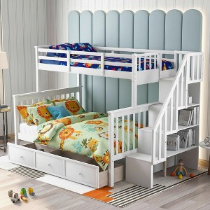 Polibi Twin-Over-Full Convertible Bunk Bed with Stair Storage and Pull-Out Drawer
