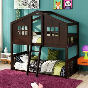 Transform bedtime into a whimsical adventure with the Polibi Twin Over Twin House Bunk Bed, a delightful combination of imaginative design and sturdy craftsmanship. Made to spark creativity while offering practical functionality, this house-shaped bunk bed features a twin-over-twin layout with a pitched roof, windowed wall panels, and charming fence-style railings. Whether you're outfitting a shared kids' room or creating a cozy sleep-and-play zone, this bunk bed delivers both safety and storybook style.