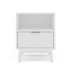 - Nightstand includes 1 open shelf and 1 drawer