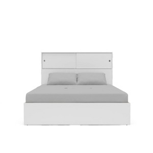 The Victoria Bed with Headboard from Polifurniture is perfect for any modern bedroom. This bed is available in full or queen sizes and mulitple finishes. The Victoria headboard features a modern design and adds handy storage space to your bedroom. The storage cabinet with sliding door offers concealed storage to keep your bedroom looking neat and organized. The wood bed frame with slat system provides mattress support so a box spring is not required. Both the bed and headboard are constructed from engineered wood with a resistant melamine finish to protect against everyday use. Freshen up your bedroom space with this modern bedroom set while keeping all of life's necessities in arm's reach. Pairs perfectly with nightstands, dressers and chests from Polifurniture's Victoria Collection.