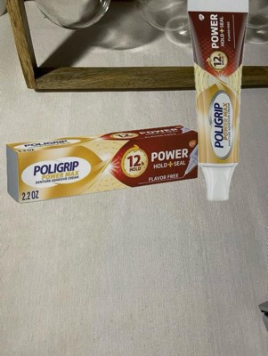 - Two pack of 2.2 oz tubes of flavor free Poligrip Power Max Power Hold + Seal Denture Cream