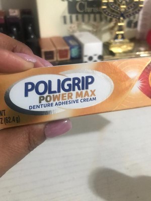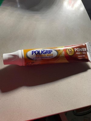 Poligrip Power Max Power Hold + Seal Denture Adhesive Cream gives your dentures the strongest all day hold with 5x the protective food seal (1, 2). Even well-fitting dentures are susceptible to food particles that can cause discomfort and gum irritation. This Poligrip denture adhesive cream is x16 clinically proven and delivers the strongest hold (2) and features a precision nozzle that enables the denture cream to deliver an all around seal to help keep food from getting stuck under your dentures. This denture adhesive is formulated to be flavor free. The smaller tube size is perfect for tucking in your travel bag or purse for on-the-go denture care. Just apply a small amount of dental adhesive to clean, dry, well-fitting dentures once daily as part of your dental care routine for 12 hour hold. Poligrip Power Max dental adhesive creates a layer between your dentures and gums for a comfortable fit and strong, all day hold, allowing you to eat, speak and smile with confidence.
