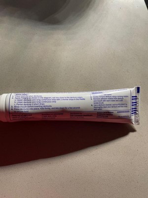 IMPORTANT READ INSTRUCTIONS FIRS, Helpful Hints: For the first time, use a SMALL amount. Use more if needed. Too much adhesive can cause oozing; apply less next time if this occurs. It may take a few tries to find the right amount for your denture. Apply once a day for secure hold. If you need to apply more than once a day, seek the advice of your dental care professional. To keep tip from clogging, keep cap and nozzle dry. Replace the cap after use. KEEP CARTON FOR COMPLETE DIRECTIONS AND WARNINGS., A few individuals may be sensitive or allergic to this product. If you experience an allergic reaction or discomfort, discontinue use immediately. Swallowing small amounts of this product, when used as directed, may occur and is not harmful., Other side effects such as oral irritations and gastrointestinal symptoms (e.g. nausea) may occur. Keep out of sight and reach of children.Shipping details