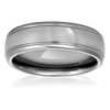 • Tungsten band ring for men and women with a width of 7 millimeters featuring a high polished surface with grooved edges