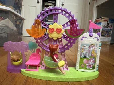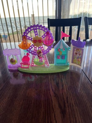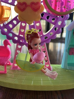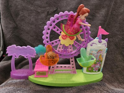 [This review was collected as part of a promotion.] My daughter loved this Polly Pocket toy! She played with it for an hour after I packaging it! Polly comes with several outfit changes which we love! The Ferris wheel and other fair rides were a lot of fun for my daughter to have Polly and her little dog play on!