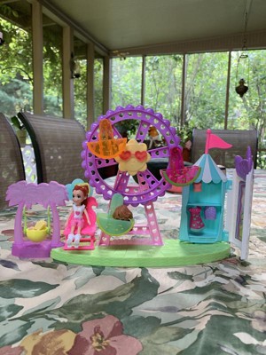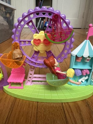[This review was collected as part of a promotion.] My kids were all intrigued by this but my 5 year daughter loved it most. The details that go into this is crazy cute! The wheel actually spins and Polly can actually fit in the seats! She comes with clothes that she can be changed into which was really neat (clothes are easy to slip on and off). And a wardrobe to keep her clothes in! I was shocked that all the pieces fit into the ferris wheel bottom part aside from the chair that justs rests on top. Unfortunately the sunglasses didn’t fit on her head - it was a little too big. The cotton candy also didn’t fit on her hand but the popcorn does! Its bigger than most Polly Pocket toys that we’ve gotten but its still super fun to play with!