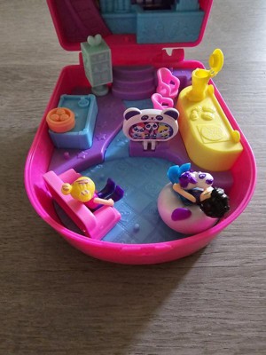 [This review was collected as part of a promotion.] My children loved this. It’s a cute little boba cafe in a boba drink. It has shakeable glitter on the outside so my daughter lives shaking it before opening it to play. It has two figures, Polly and a boy. It has some little boba cups and a tiny panda and some treats. One of the pieces is a couch and I have no idea where the couch is supposed to go. In the pool??? There’s also a blue counter on the bottom left, and I have no idea what it’s supposed to be. It also comes with a little foldable computer that my kids will likely bend and snap, and I found it a little challenging to arrange all the pieces so the case will fully close. I have other Polly pockets that close much easier. Other than that, it is a great toy. I love the pool floaty that turns, the pool bar to tv and the swing. My kids love all the little details and places they can put the figures and that it’s just a whole world of play in a small case. My son demanded his own, so will definitely be buying more.