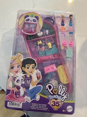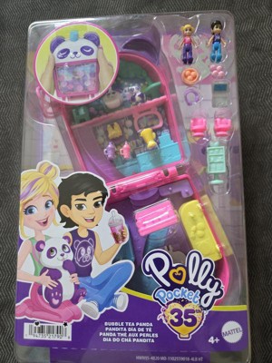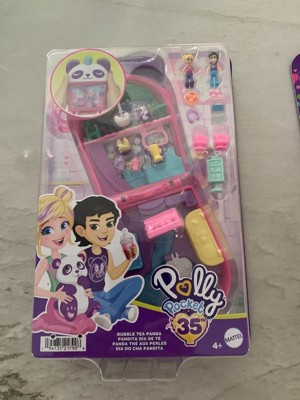 Polly Pocket Dolls & Playset, Bubble Tea Panda Compact, Animal Toy with 2 Micro Dolls, Pet Panda & Food Accessories