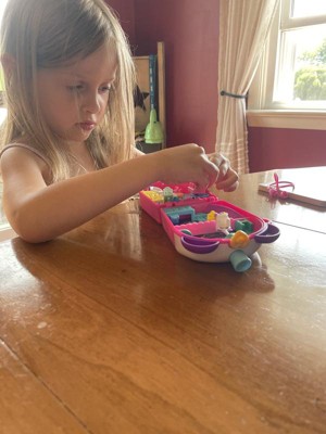 [This review was collected as part of a promotion.] My kids love polly pockets and have an entire little town of them. I love that this one comes with a little blinder that has an opening lid. My kids love it when the polly pockets have interactive case parts like the boba bubbles. Over all they are great little toys.