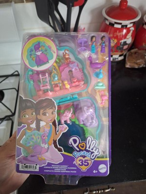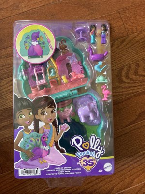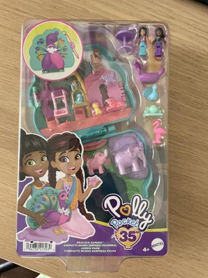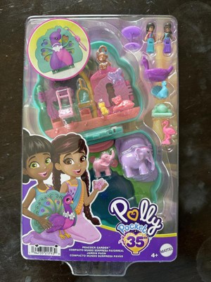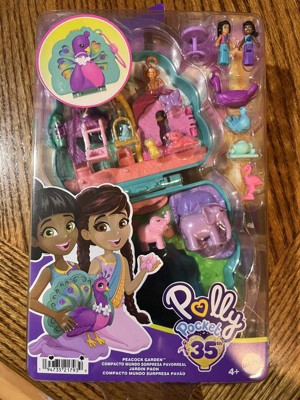 Polly Pocket Dolls & Playset, Peacock Garden Compact, Travel Toy with 2 Micro Dolls, Pets & Animal Accessories
