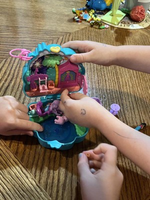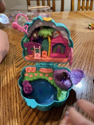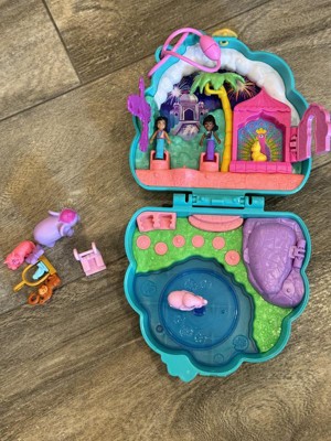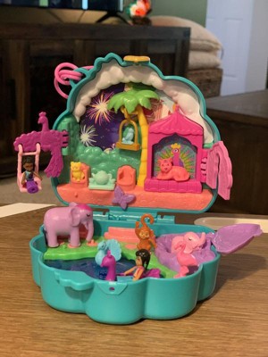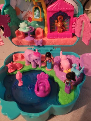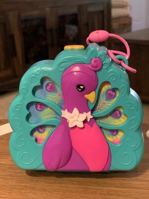 [This review was collected as part of a promotion.] Daughter loved it! It’s got super cute little animals and a boat along with 2 Polly pocket characters. She especially likes how it looks like a beautiful peacock when the case is closed and that you can rotate the white flower around the peacock’s neck to change the color of the feathers