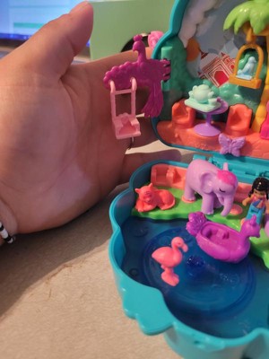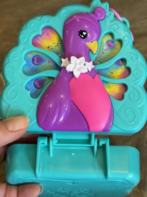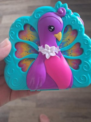 [This review was collected as part of a promotion.] Super cute rainbow peacock on the outside! Tons of animal fun on the inside! Polly pocket opens up into a safari world of fun with this toy! Lots of animals and two Polly dolls! So much fun packed into one little toy!