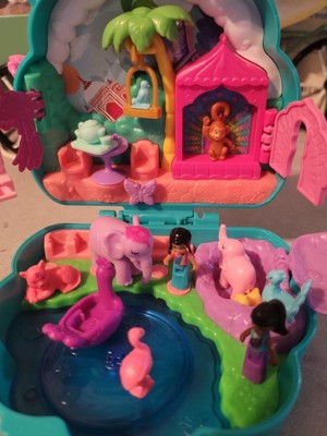 [This review was collected as part of a promotion.] Great entertaining Polly pocket. Has lots of details and accessories. The bright colors are eye catching. It attracts the attention of my daughter. She loves playing with all the accessories and the elephants are so cute. The twirling peacock entrance is great.