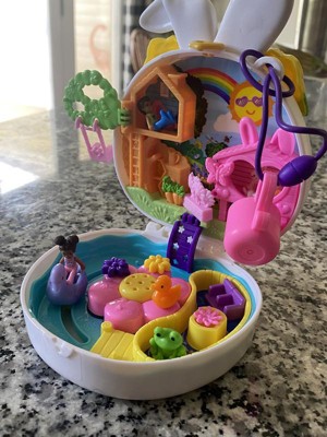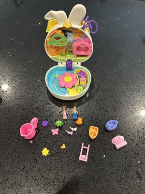 [This review was collected as part of a promotion.] I'm a big fan of Polly Pocket toys, and I was really excited to try out the Flower Garden Bunny Compact Playset. This compact is small enough to fit in my pocket, but it still has a lot of play features. The playset opens up to reveal a cute little bunny garden with a Shani doll and her friend. There's a bunny hutch, a swing, a bridge, a lilypad splash pad, and even a few water features. The pieces are all small, but they're well-made and sturdy. My daughter loves playing with this compact. She loves putting the dolls in the different scenes, and she loves making up stories about them. The water features are also a lot of fun. She loves watching the water splash out of the lilypad and the flower. I think the Polly Pocket Flower Garden Bunny Compact Playset is a great toy for kids. It's small and portable, so it's perfect for taking on the go. It's also a lot of fun to play with, and it has a lot of different play features. I highly recommend it!