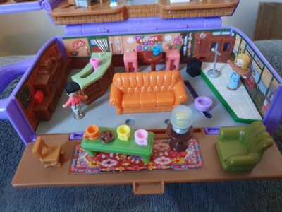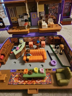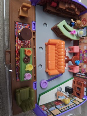 [This review was collected as part of a promotion.] Adorable, compact interactive, fun Polly Pocker set with 6 moveable dolls. The coffee cup is true to color of the Friends series, beautiful purple. Actual stage for Phoebe with her guitar. Realistic and accurate. Age appropriate. So many scenario to have lots of fun with.