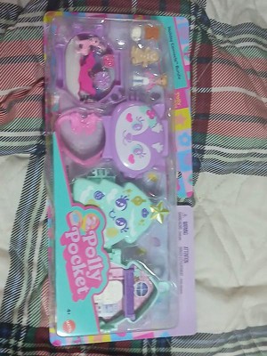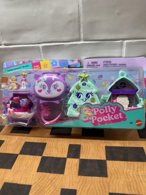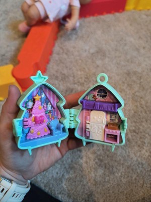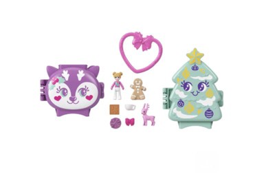 - An adorable reindeer and Christmas tree decorate the outside of these Polly Pocket Holiday Connects compacts that open to reveal tiny worlds filled with big adventures!