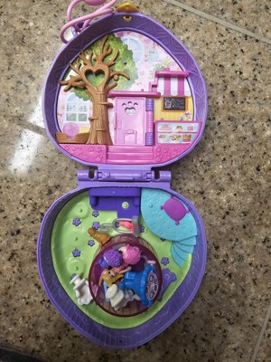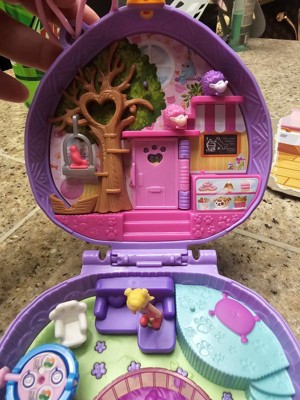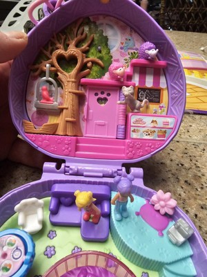 [This review was collected as part of a promotion.] This was a good cute polly pocket, my daughter enjoys it and I brought it along for travel which kept her occupied for a good while, it has a good amount of pieces, and I like how everything can be stuck down to play and when its time to clean up.