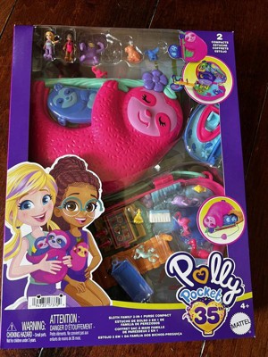 Polly Pocket Dolls and Playset, Travel Toys, Sloth Family 2-in-1 Purse Compact