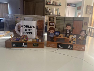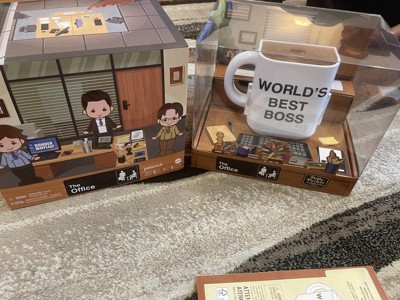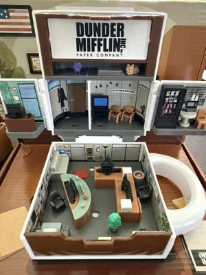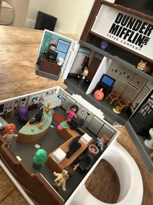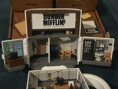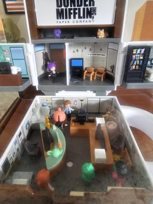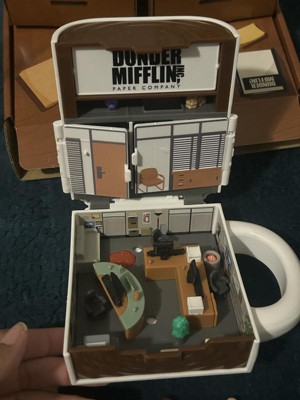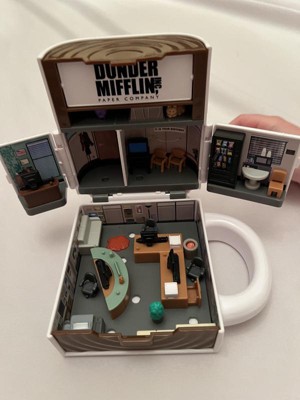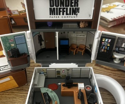 [This review was collected as part of a promotion.] Great little “office” replica! Pieces are detailed and accurately reflect the characters from the show. Playset reflects the show’s office layout and it’s a fun detail that the set folds up as a mug! Cool collectors feature is that the box can be converted into a display case used to display the contents!