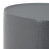 Introducing the Polonium Occasional Hammered Table in dark grey, a sleek and stylish addition to any space. This metal marvel is crafted to bring a modern touch to your home decor. The hammered surface adds a unique texture, setting it apart from ordinary tables. Its dark grey tone blends seamlessly with various color palettes, offering versatility for any room setting.