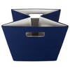 - Wrapped in polyester fabric, storage bins have a cardboard core on the sides and bottom to give shape and add structure while still allowing bins to fold flat when not in use.