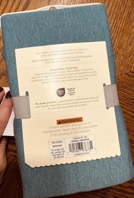 Soft, smooth, and gentle for my baby to sleep on. It’s a cheerful blue color that blends well with many nursery colors. Washes well, no piling. Crib sheet stays on the mattress securely and doesn’t wrinkle.