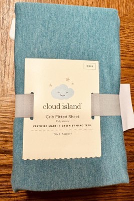 This Poly Rayon Span Fitted Crib Sheet from Cloud Island™ is designed to fit standard cribs and toddler beds. Made from a soft jersey fabric blend of polyester, rayon and spandex, the standard crib sheet fits a six-inch mattress and is made with all-around elastic for a secure fit. Plus, the serene teal blue shade adds a pretty touch to your baby's nursery decor.
