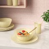 Add a touch of modern sophistication to your table with this PolyPro Fluted Translucent Cereal Bowl from Room Essentials™. Made with 20% post-consumer recycled plastic, this yellow bowl features a fluted design to enhance aesthetics of your tablescape. With a capacity of 1020 milliliters, this round bowl is ideal for serving cereal, salads, soups and more. Plus, it's both dishwasher and microwave safe for easy cleaning and reheating.